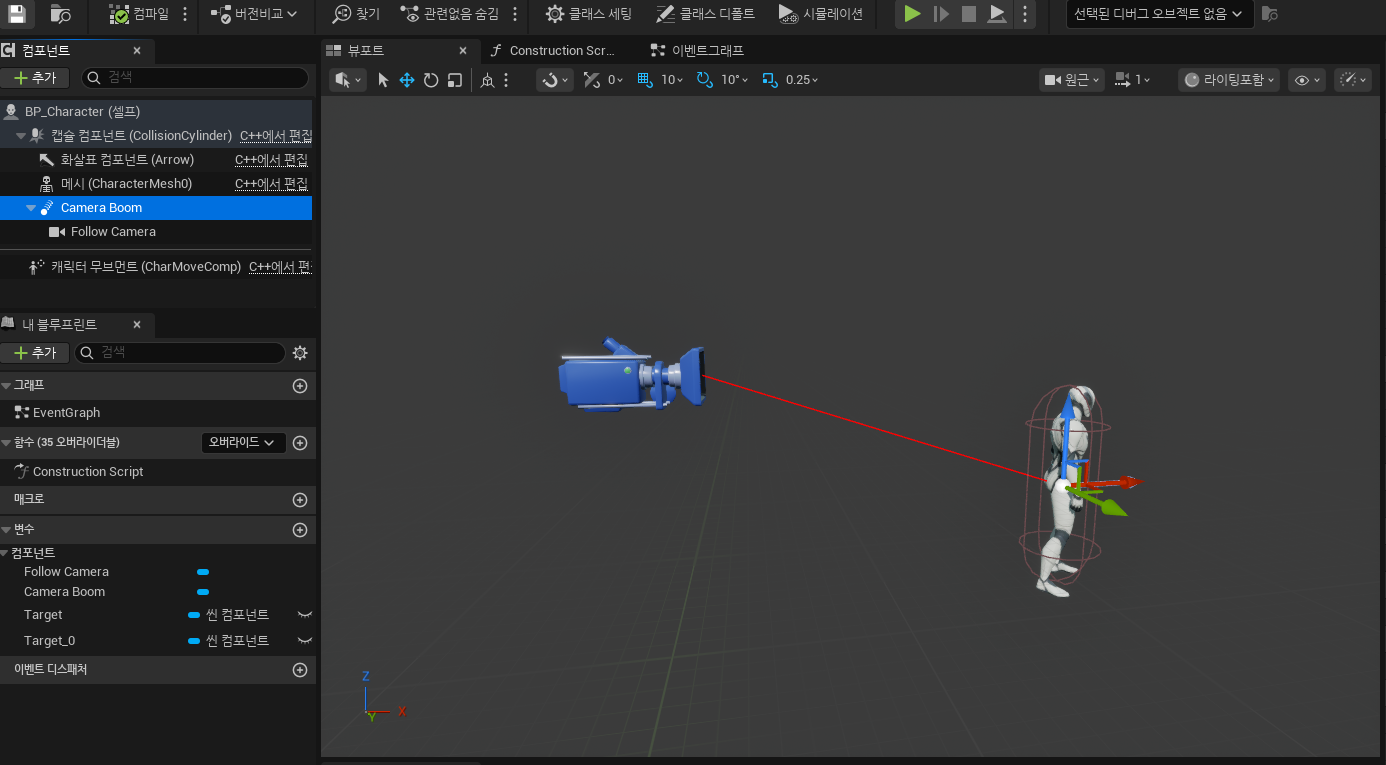 - Event BegonPlay -> Enable Input 연결 부분에서 Get Player Controller 노드 -> Enable Input의 Target 핀에 연결되어있는 노드를 끊고 Player Controller 핀에 연결하여 해결